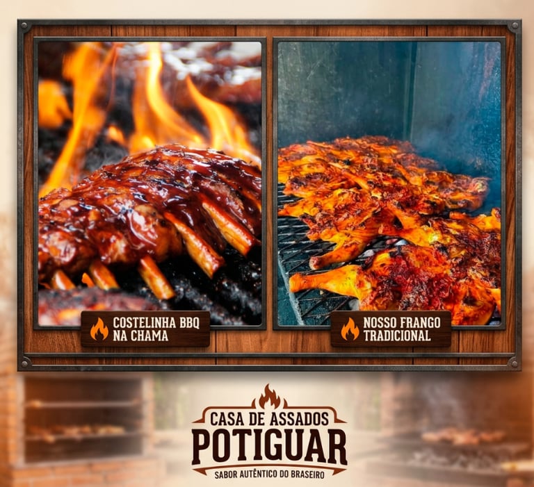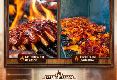 Frangos e carnes nobres com acompanhamentos feitos com carinho para celebrar cada momento.