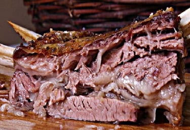 A perfeição em forma de carne: nosso cupim é preparado no bafo até atingir uma textura amanteigada que derrete na boca, garantindo suculência extrema e um sabor defumado inesquecível.