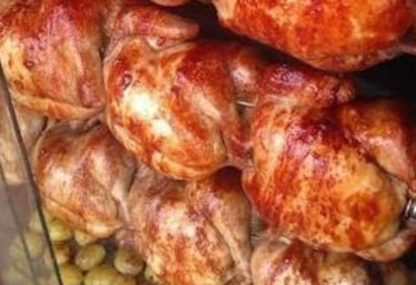 Dourado por fora e surpreendentemente suculento por dentro, nosso frango é assado lentamente na máquina para garantir aquela pele crocante e o tempero perfeito em cada pedaço.